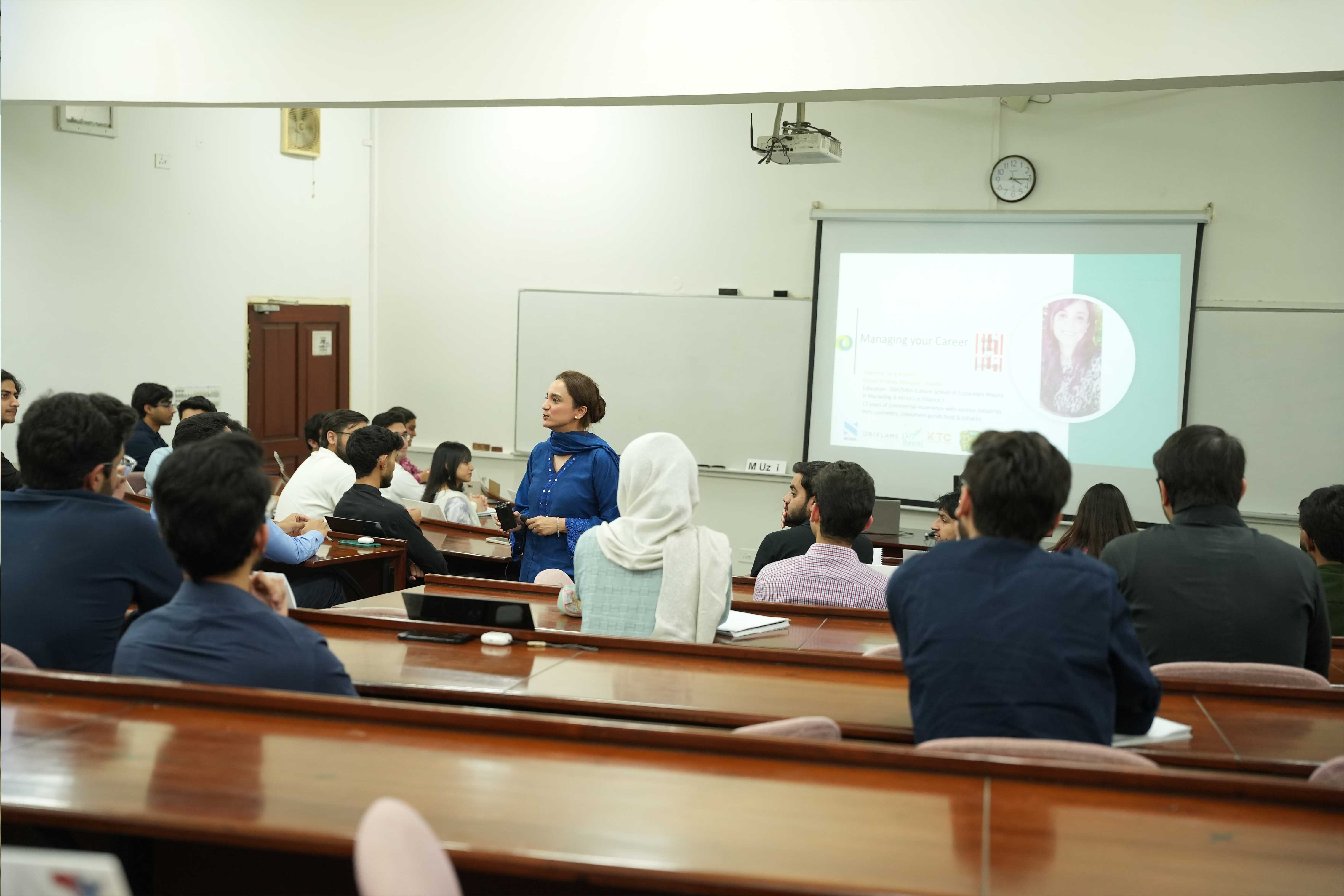 The Corporate Relations Office at the Lahore School of Economics hosted Ms Haleema Tariq Ameen, Group Strategy Manager at Mayfair Foods, for a session with BBA IV students titled “The Principles of Good Governance in Pakistani Companies”. She addressed governance principles, ESG priorities, and innovation. The lecture concluded with an engaging discussion and active student participation, offering valuable insights into corporate practices and long-term organisational sustainability in Pakistan’s evolving business environment.