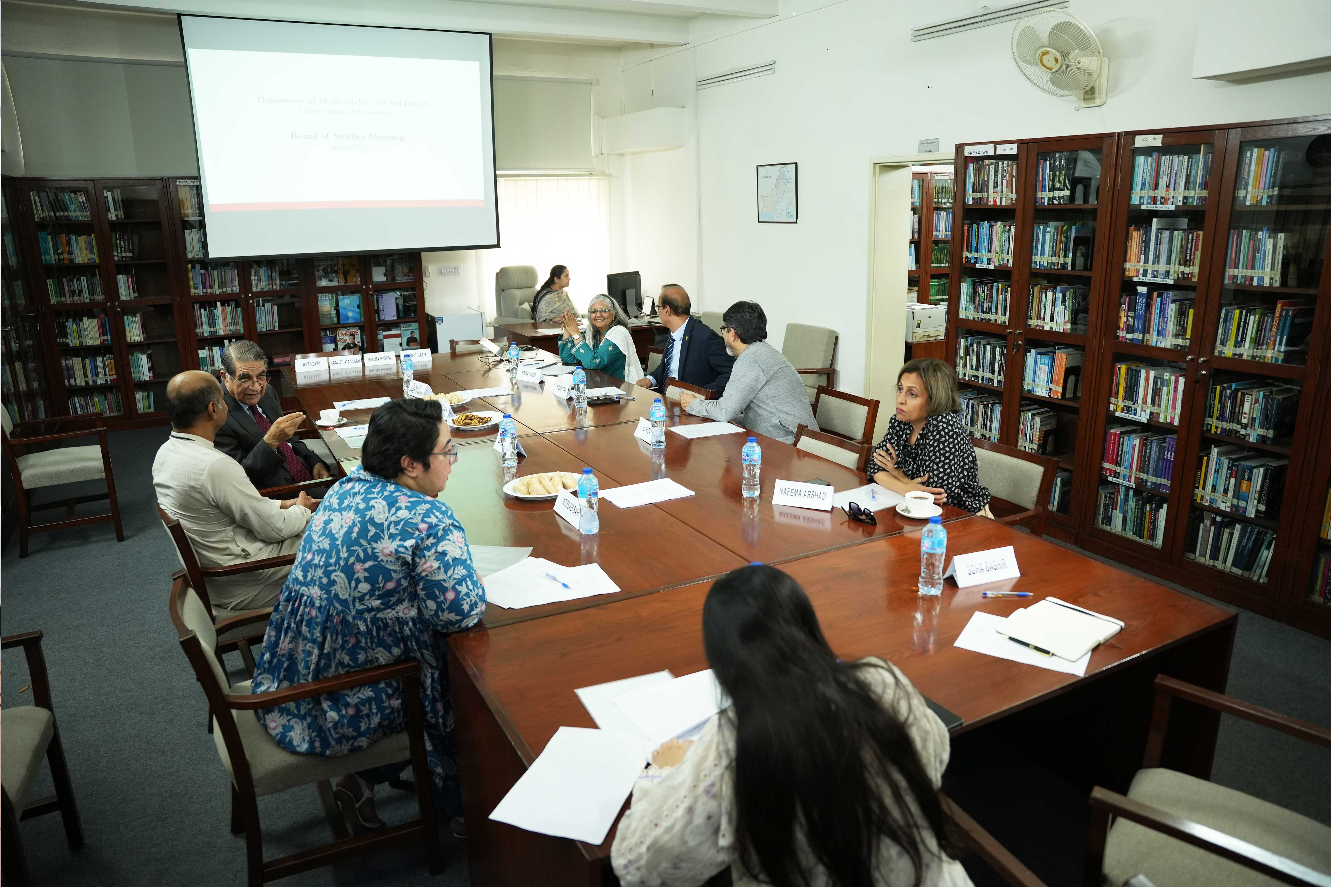 The Department of Media Studies, Art and Design at the Lahore School of Economics convened its Board of Studies to review Faculty Research 2025, Faculty Publications and Submissions 2026, and Five-Year Research Programmes (2026–2031) aligned with the institution’s Vision and Mission. The Board also approved the introduction of a 3-credit-hour Artificial Intelligence course across undergraduate programmes, replacing Computing for Business & Economics II, and its inclusion in the BFA Visual Arts programme in lieu of an elective.