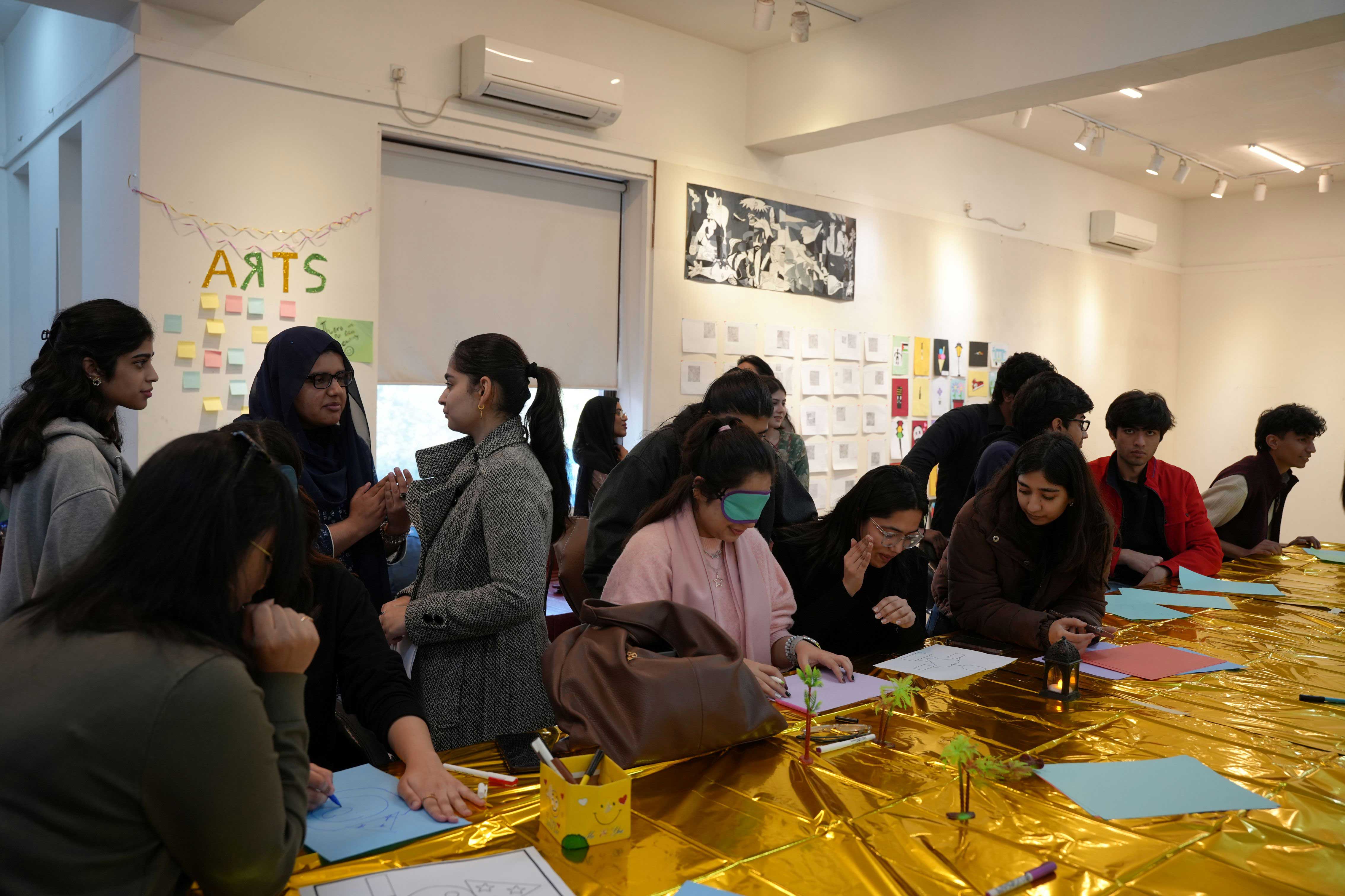 The Lahore School Arts Society organised the Blindfold Art Challenge, an engaging creative activity that encouraged participants to explore imagination beyond visual perception. Students embraced spontaneity, trust, and artistic expression as they created artworks without sight, relying on instinct and emotion. The initiative fostered creativity, collaboration, and confidence, while highlighting art as a powerful medium for self-discovery, experimentation, and expressive freedom within the institution's vibrant campus culture.