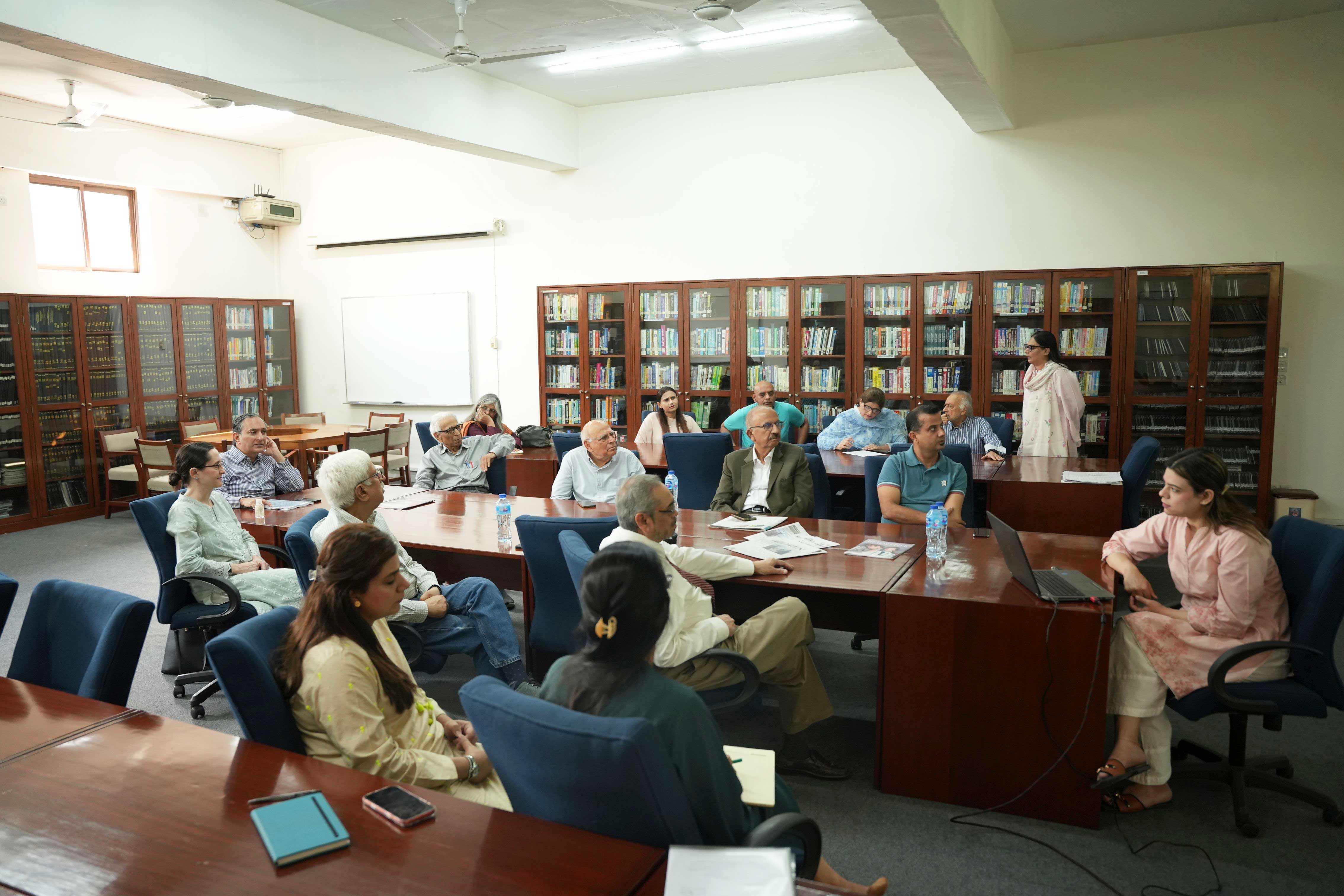 Dr Azam Chaudhry, Pro-Rector of the Lahore School of Economics and Dean of the Economic Faculty, attentively listens to the presentation of an economic research paper, reflecting the Lahore School continued commitment to academic excellence and the rigorous research within the institution, while engaging thoughtfully with the ideas and analyses presented by researchers and contributing to an environment of intellectual dialogue and critical discourse during today's academic session.