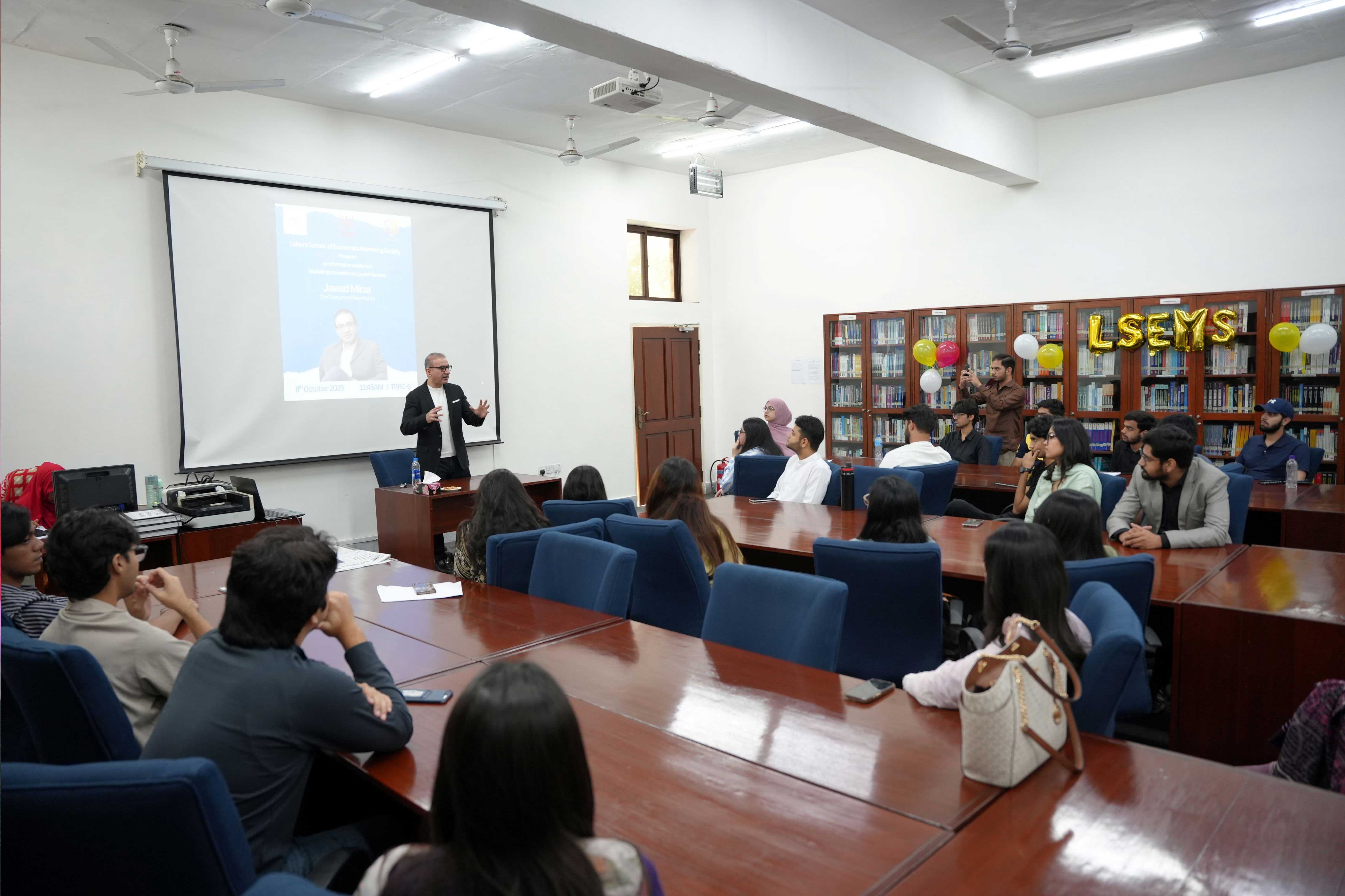 Mr. Shehzad Ahmed, Chief Operating Officer at SeeMe, in his lecture on the Current Advertising Landscape in Pakistan and Future Prospects, highlighted the latest developments in advertising in Pakistan and prospects in the advertising sector. He was invited as part of the Distinguished Professional Lecture Series Programme organised by the Lahore School of Economics Corporate Relations for the Executive MBA final semester students. Mr. Ahmed in his lecture, critically discussed the modern-day advertising industry in Pakistan, including current trends, challenges, and its potential. He touched on the revolutionary nature of digital innovation, globalisation and changing consumer behaviour, stressing how these three forces are revising communication strategies and brand interactions. The lecture provided students with a nuanced understanding of the evolving advertising landscape in Pakistan and also valuable insights into the future growth opportunities in the industry.