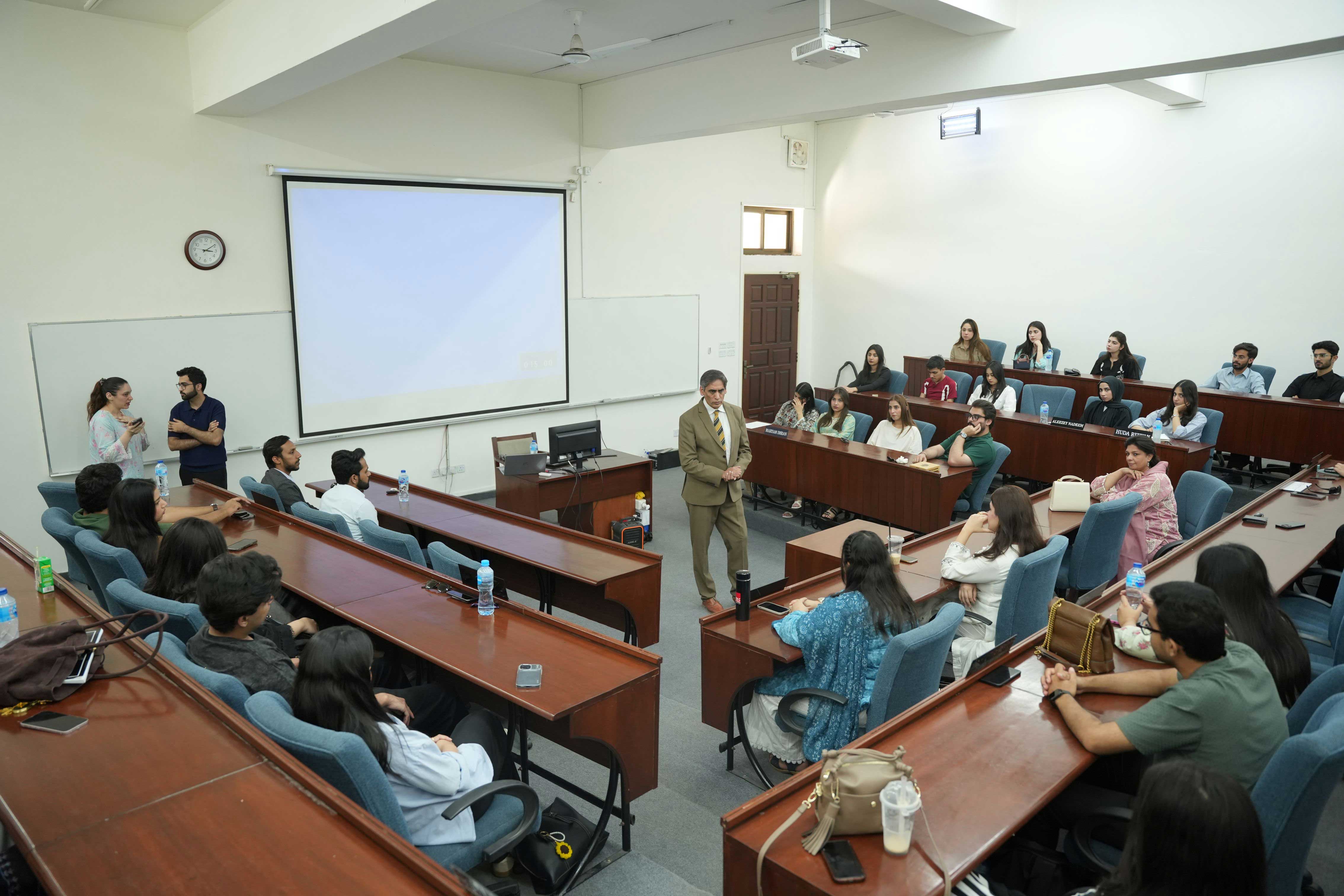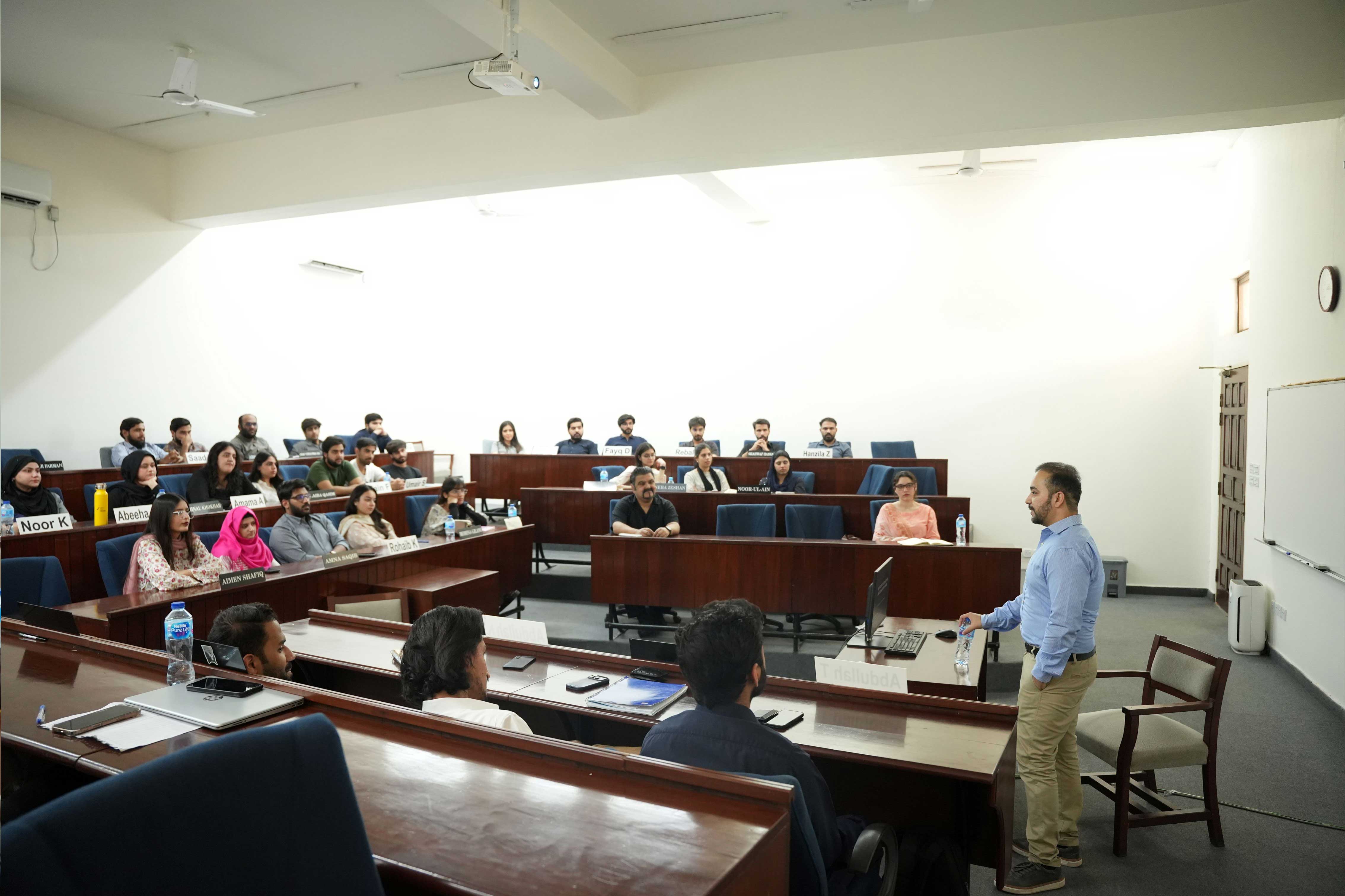 Lahore School of Economics invited Mr Shoaib Baig, Executive Director of JK Group, as a guest speaker for an insightful session with students. He provided an intellectually stimulating platform to explore contemporary strategic challenges through the lens of industry practice. The lecture examined how Artificial Intelligence is reshaping business policy formulation within an increasingly volatile, uncertain, complex, and ambiguous environment. Mr Baig highlighted AI’s role in strengthening strategic analysis by enhancing data accuracy, forecasting capabilities, and real-time decision support.