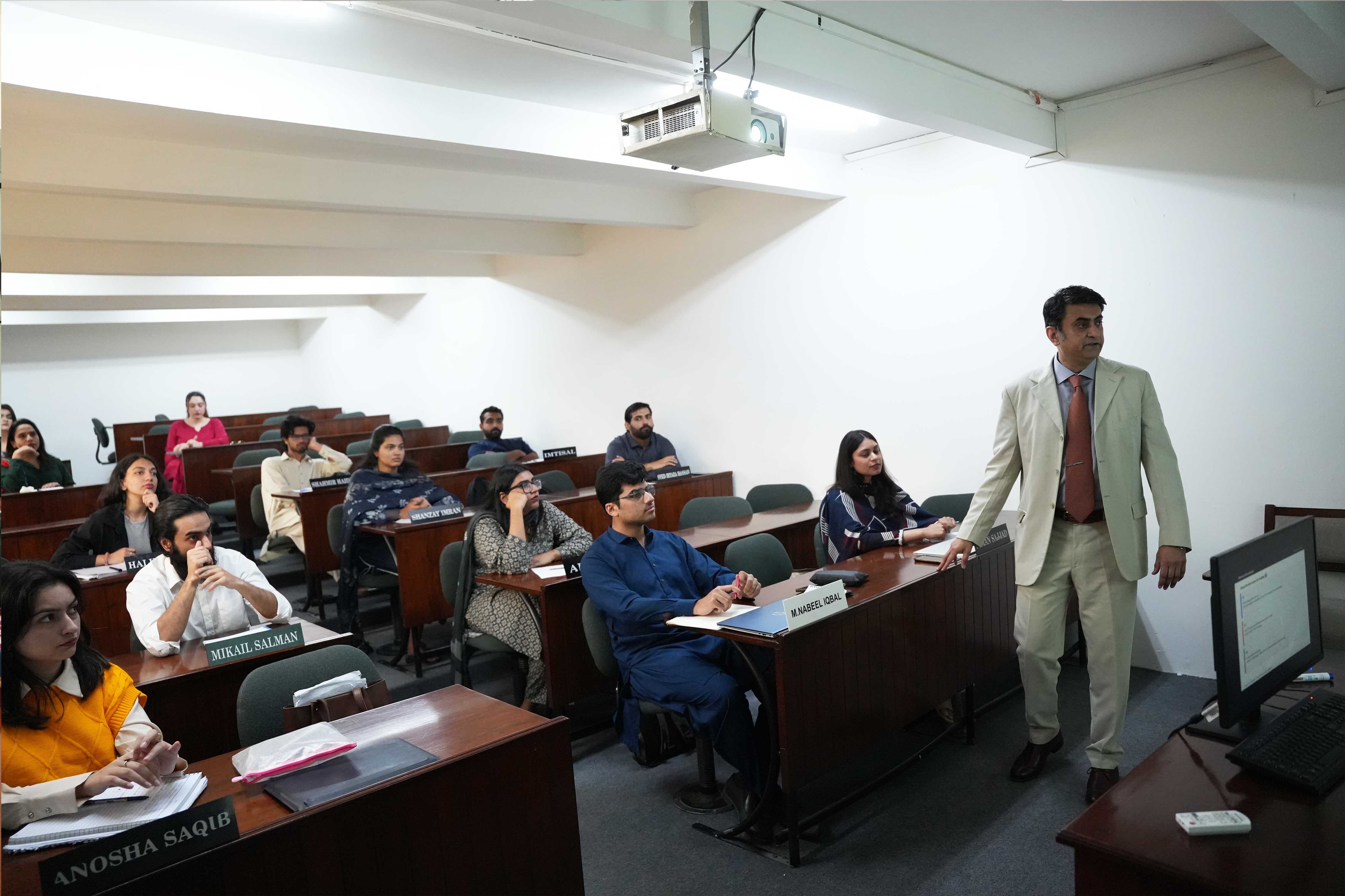 The Corporate Relations Office at the Lahore School of Economics organised a Distinguished Professional Lecture Series session for Strategic Management students. Mr Shah Jahan, Chief Sales Operations Officer at Dawn Foods, spoke on “Strategy into Action”, emphasising execution, accountability, and structured KPIs. The session concluded with an interactive discussion, enabling students to connect theory with practice and highlighting that sustainable success depends on disciplined leadership and effective implementation.