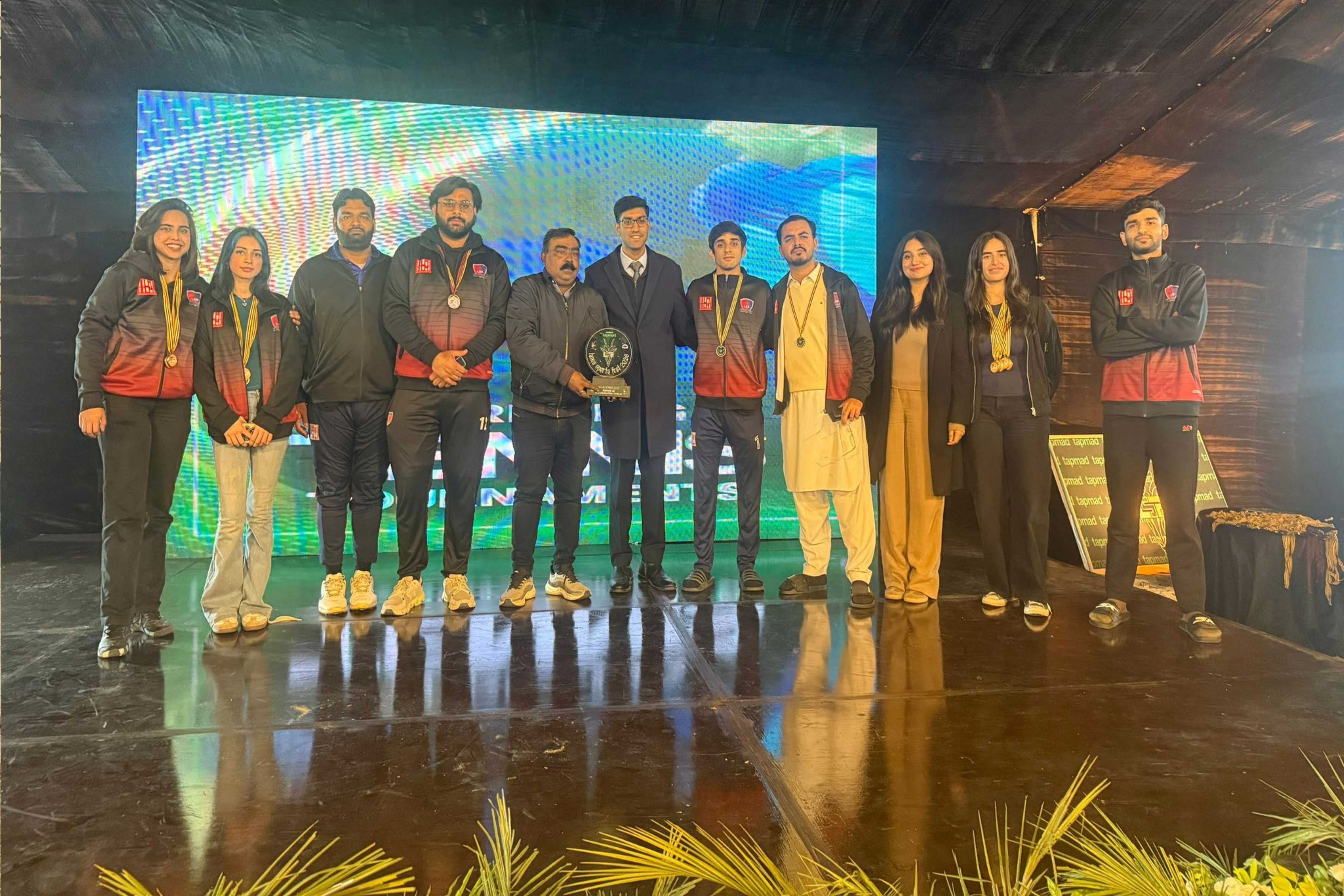 A group photograph signifies the exceptional achievement of Lahore School of Economics sportspeople at LUMS Sports Fest 2026. The teams displayed great competency, teamwork and sportsmanship, earning gold medals in several events, including male and female cricket, male and female football, netball, female volleyball and female swimming. This success is an indication of the athletes’ effort, hard work and competitiveness, which bring pride to the institution and show that it is very serious about excellence in sports and in extracurricular activities.