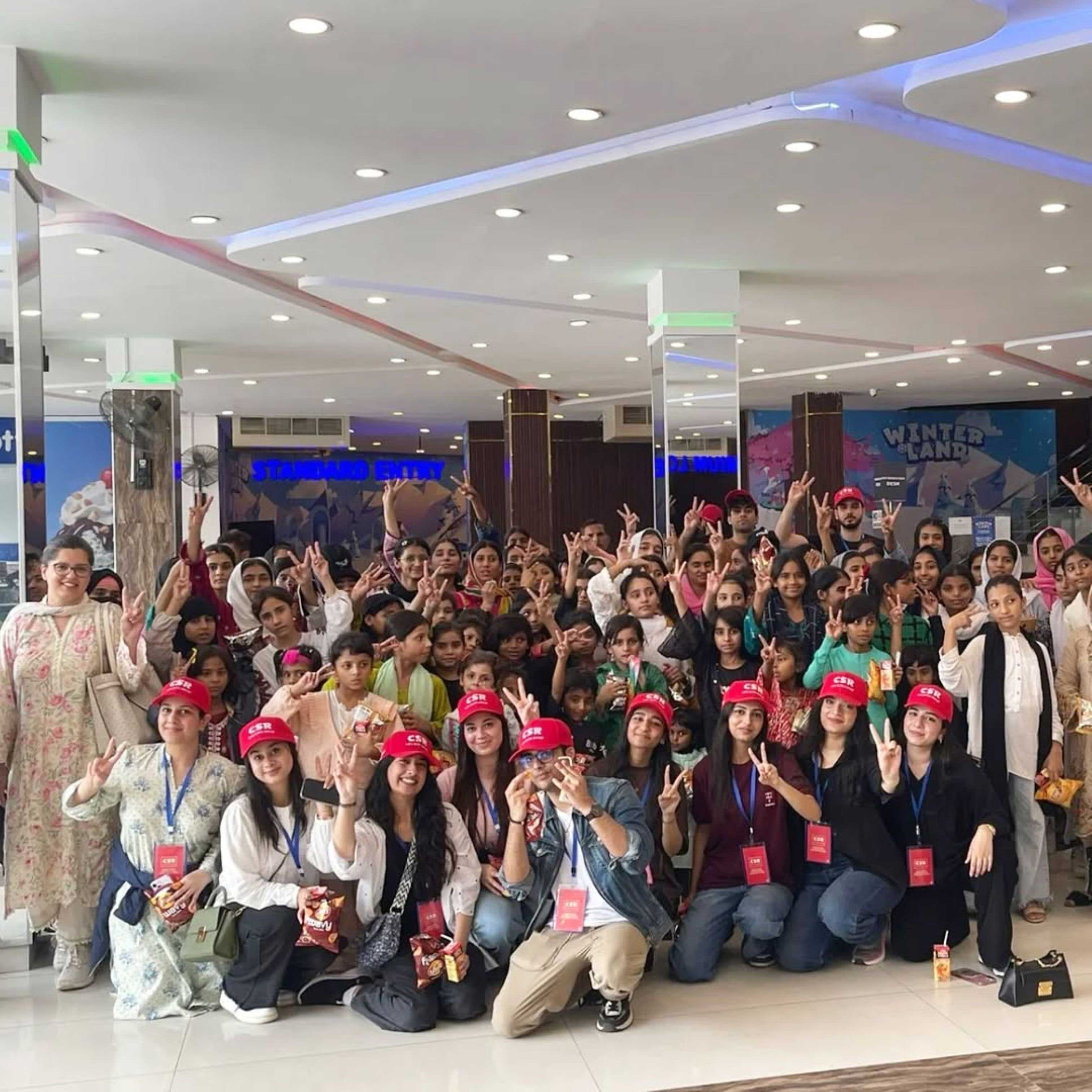 The Lahore School of Economics CSR Centre organised a memorable day trip for the children of Al-Shafiq Foundation Trust Shelter to Winter Land, providing them with a joyful and enriching experience. The Al-Shafiq Foundation is a Lahore-based charitable organisation, established in 2012, to provide safe and secure place for orphaned and homeless children. Arranging a such visit is the Lahore School CSR Centre’s on-going initiative of community engagement and social responsibility. At the end, a group photo of the children of Al-Shafiq Foundation Trust Shelter alongside the Lahore school CSR organisers and volunteers.