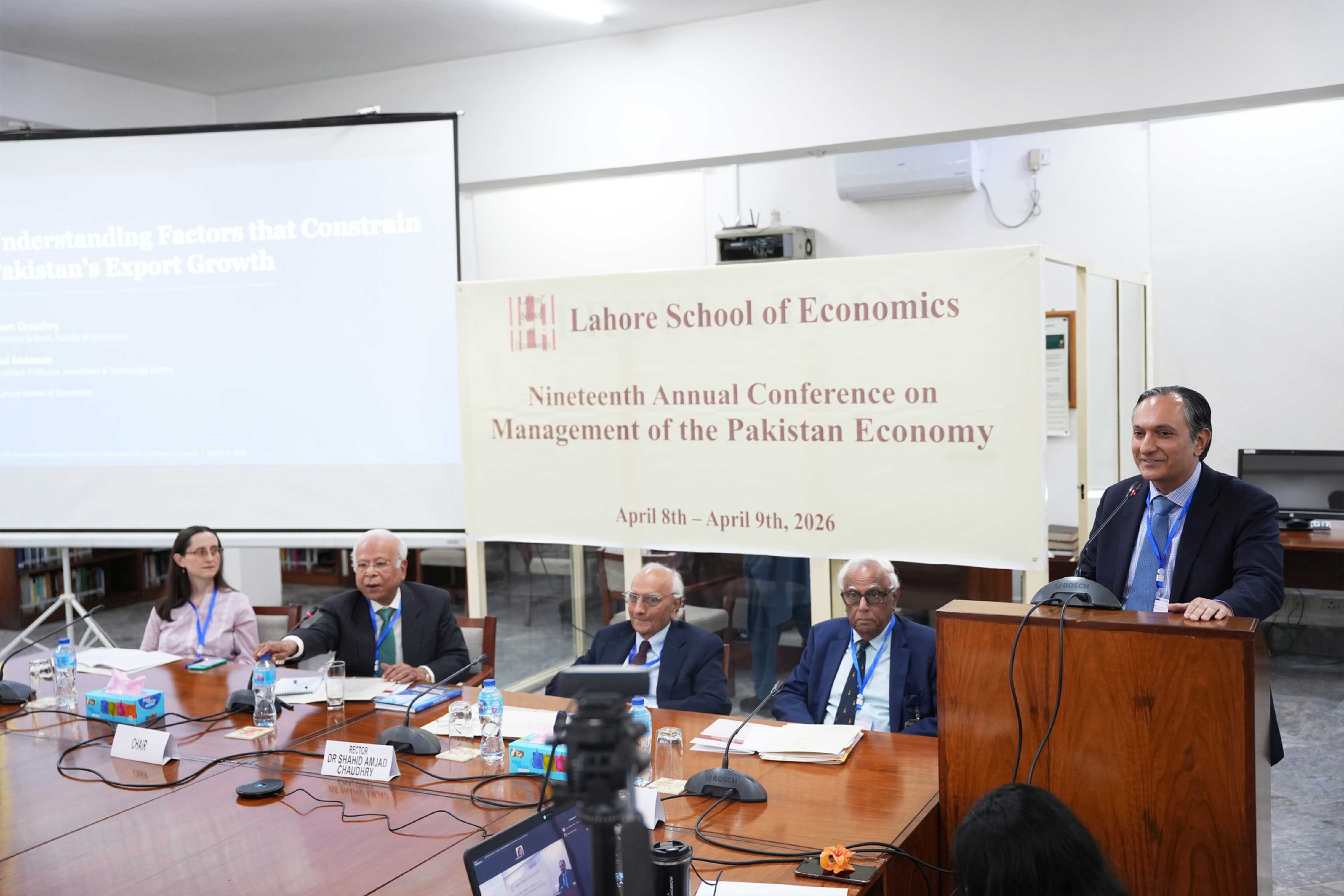 Dr Azam Amjad Chaudhry, Pro-Rector and Dean of the Faculty of Economics, presented his research titled “Exchange Rate Impact on Trade and Growth” at the Nineteenth Annual Conference on Management of the Pakistan Economy at Lahore School of Economics. His insightful analysis examined the intricate relationship between currency fluctuations, trade competitiveness, and economic expansion. The presentation stimulated scholarly discussion among participants, deepening understanding of macroeconomic dynamics and offering valuable policy recommendations to support Pakistan’s long-term economic stability and growth.