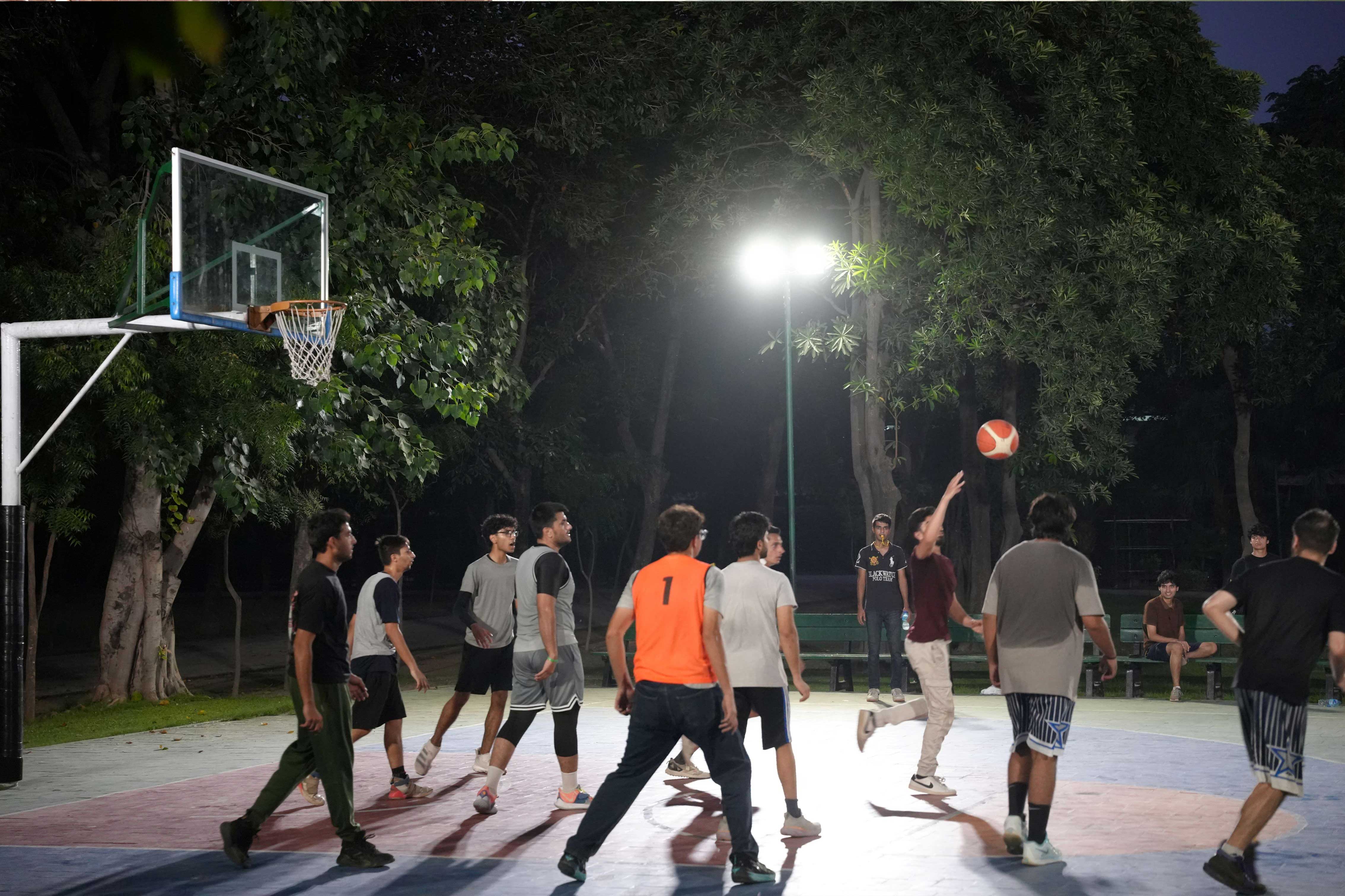A basketball match is underway at the part of the Batch Tournaments at the Lahore School of Economics. These batch tournaments in all sports disciplines are an annual event held after the new admission to give newly inducted students a chance to establish a sporting connection with their department’s senior students. These tournaments are a commitment of Lahore School to provide excellent, healthy recreational activities alongside educational progress. These tournaments are crucial to build team spirit and establishing meaningful connections among the student body.