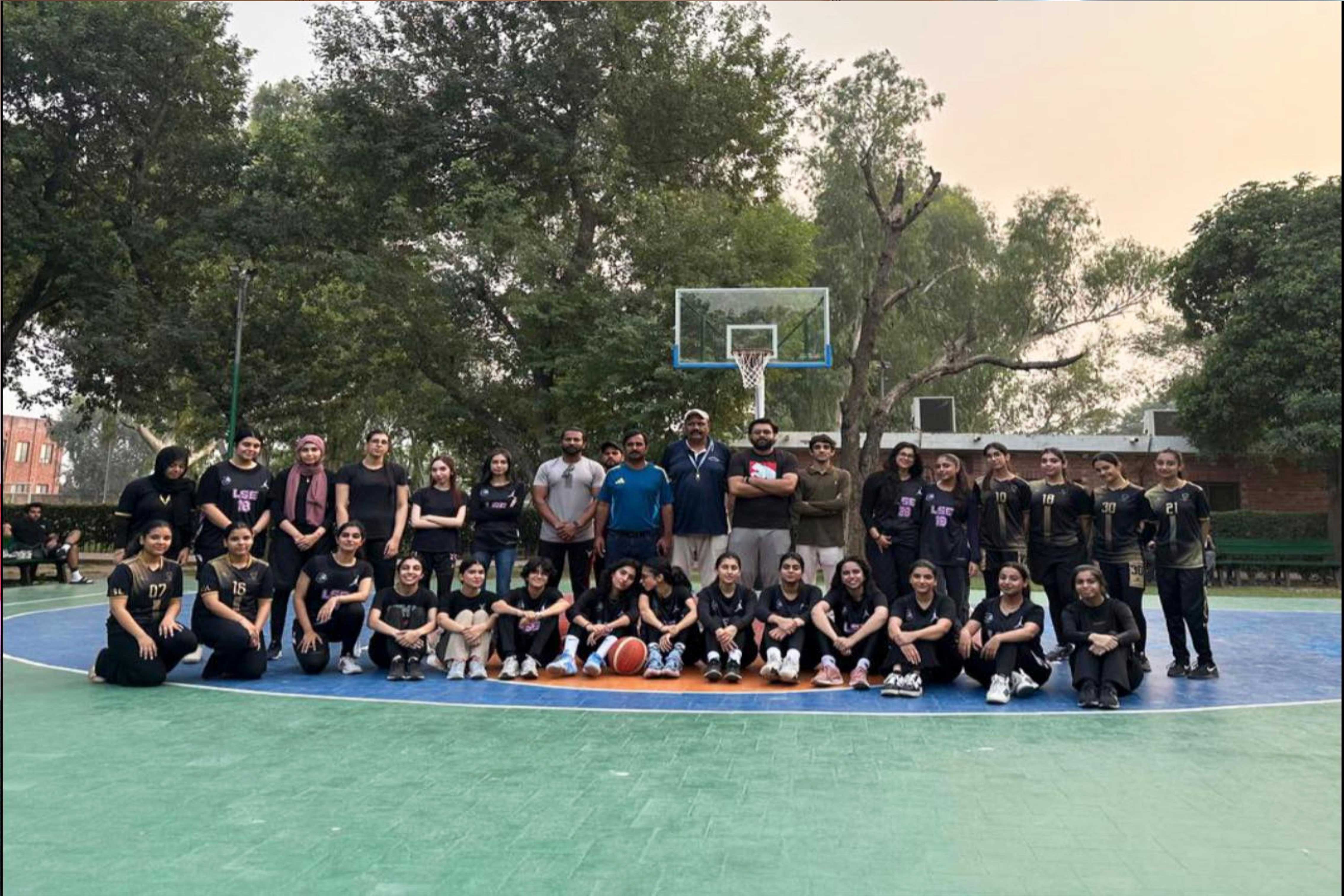 The Lahore School of Economics girls’ basketball team is posing with the coach and managerial team. The picture represents the teamwork, commitment, and sportsmanship culture, which characterises athletic life of the institution. With their coach and the support of the sports management, the team is a representation of the Lahore School in ensuring full participation of those girls’ players.