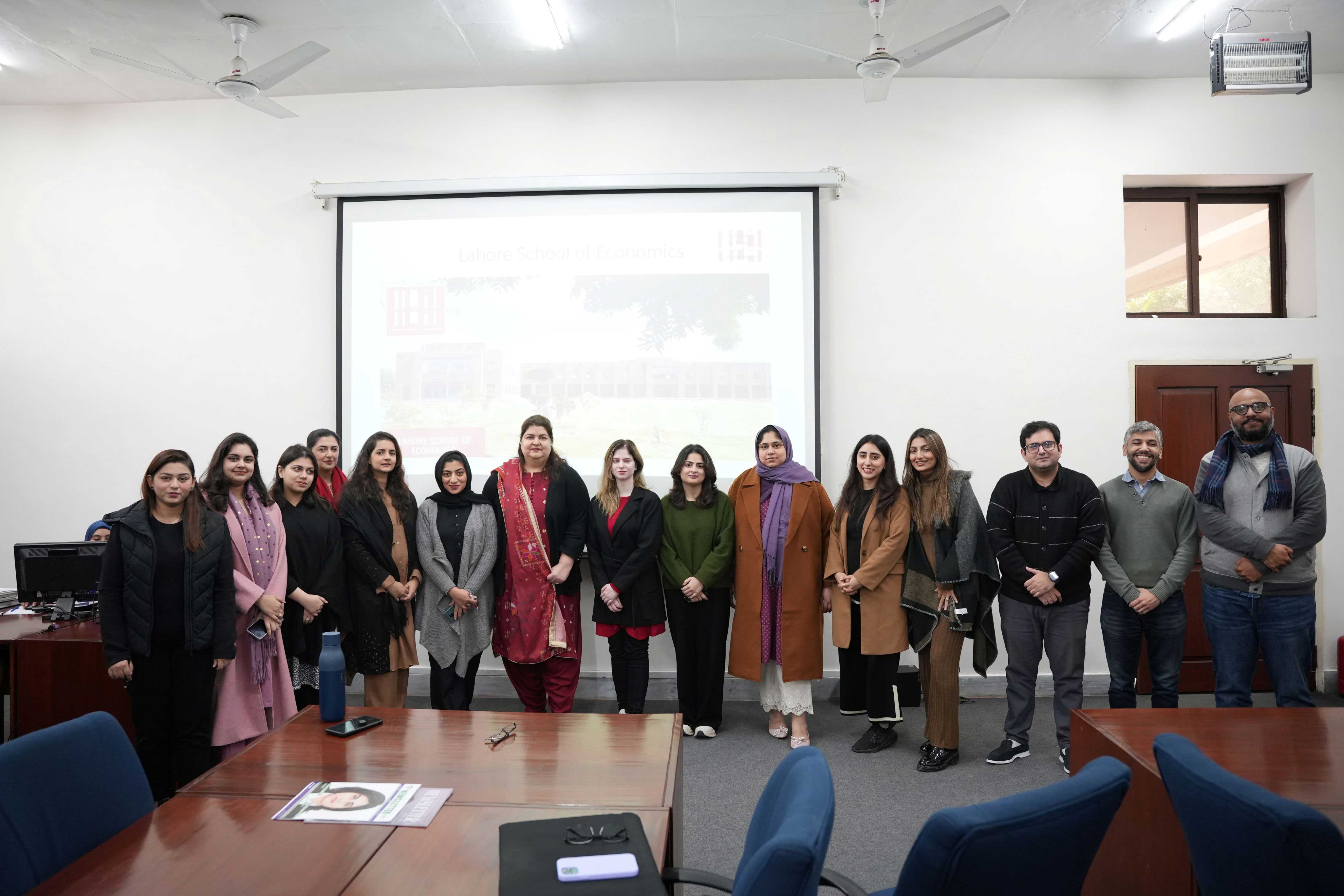 The portrait is a group photo of a faculty orientation that happened at the end of an orientation session of faculty members joining Lahore School of Economics prior to the start of the Spring Semester 2026. The session was conducted by Ms Ayesha M. Jamal Ansari, the Deputy Registrar, Human Relations Management Office. The purpose of the orientation was to acclimatise the new faculty to institutional policies, academic standards and administrative processes as well as to provide an opportunity to engage with and align with the Academic values and professional expectations of the School.