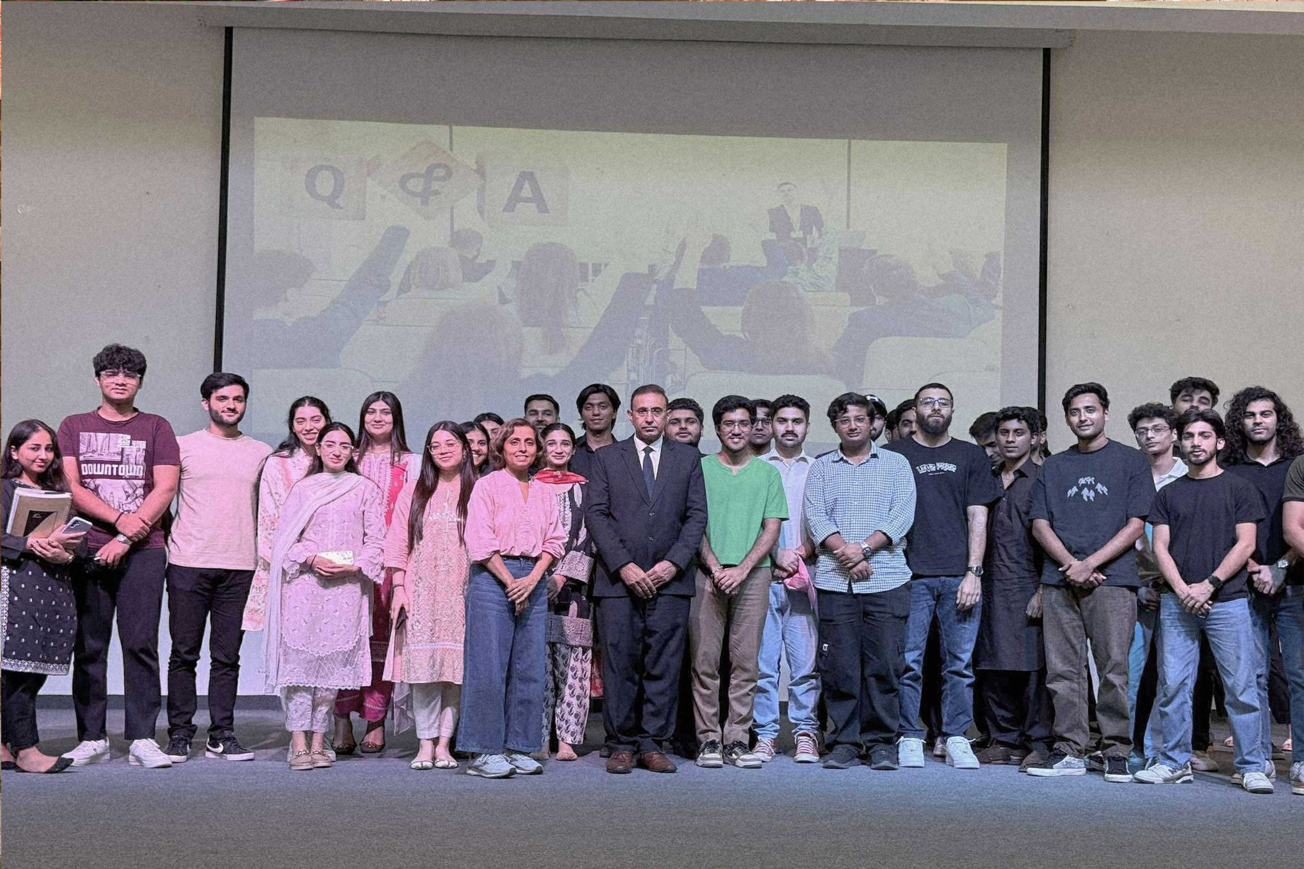 The Lahore School of Economics Placement Office hosted Mr. Rafay Rauf, Senior Key Accounts Manager at Reckitt Pakistan and an alumnus from the Class of 2017 as part of its Inspiring Career Series 2025. Mr. Rauf in his lecture shared his experiences in business environment by sharing insights into the opportunities and challenges encountered in the practical corporate world. His talk provided students with practical guidance, inspiration, and a clearer understanding of career development pathways, equipping them with the knowledge to navigate their professional journeys with confidence and purpose.